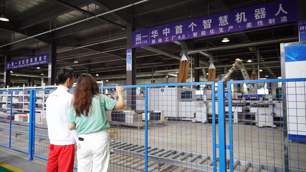 在工作人员的引导下,黄泽楠走进了简一家居中原地区最先进的定制家居智能制造工厂,近距离体验4.0智能生产线的高效运作。