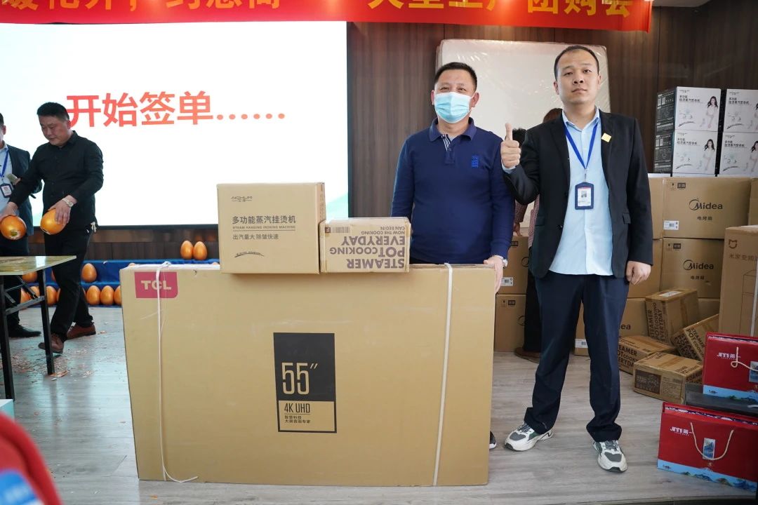 中午业主们在简一员工餐厅简单用餐之后就来到了我们大型厂购会的活动现场,下午1点30分在一段欢歌热舞之后,我们期待已久的直购大会正式开始。