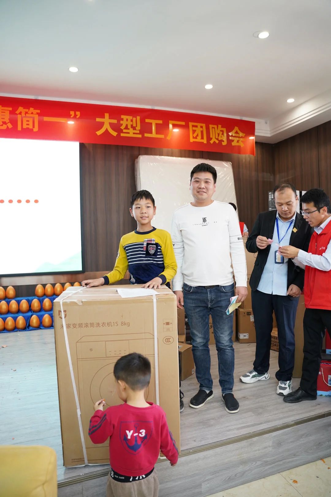现场更是大奖频出,客户们的热情也在大奖出现之后被点燃,开始没多久我们的小米洗衣机就被幸运客户砸中。砸到的幸运,看到的开心,场面热闹非凡。
