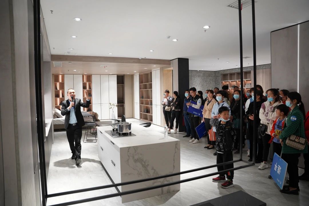 参观完生产车间,陈老师带领业主朋友们来到了我们展厅进行参观讲解,我们简一家居的新展厅也在此次活动中惊艳亮相。