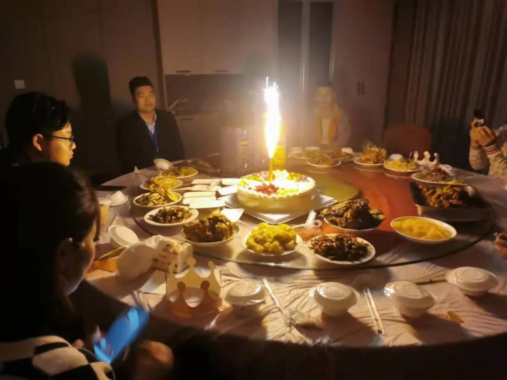 随着生日的旋律响起大家对着美味的生日蛋糕许下愿望