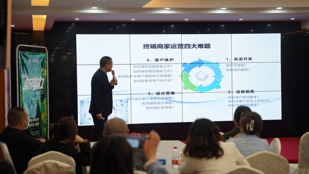 此次说明会由运营总监刘剑刘总对当下定制家居市场环境做了详细全面的分析,从市场趋势、品牌的选择及简一品牌定位、产品体系、研发团队、营销帮扶团队、新媒体开发等诸多方面,进行了逐一的介绍,让在场的意向经销商们明白了行业未来发展趋势,了解了简一品牌优势。