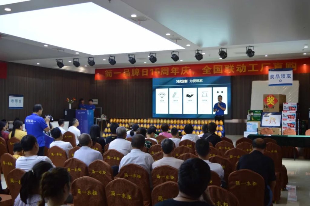 在简单就餐之后,我们期待已久的直购大会正式开始,此次直购大会微赞全程直播,让更多没有时间来到现场的业主们看到产品,抢到实惠。大会之初先由销售部刘总为业主介绍简一品牌理念以及简一秋季新款产品——意式轻奢系列。