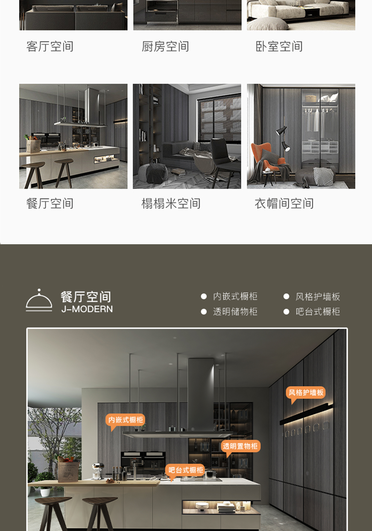 理念:当生活洞察力与丰富创造力相意会,您的摩登时代从此开启;元素:墙柜一体、环衬柔光、岩板台面、极简铝框门、中岛烟机;格调:新潮、简约、高雅气质、精致、未来感、品质、国际范儿;