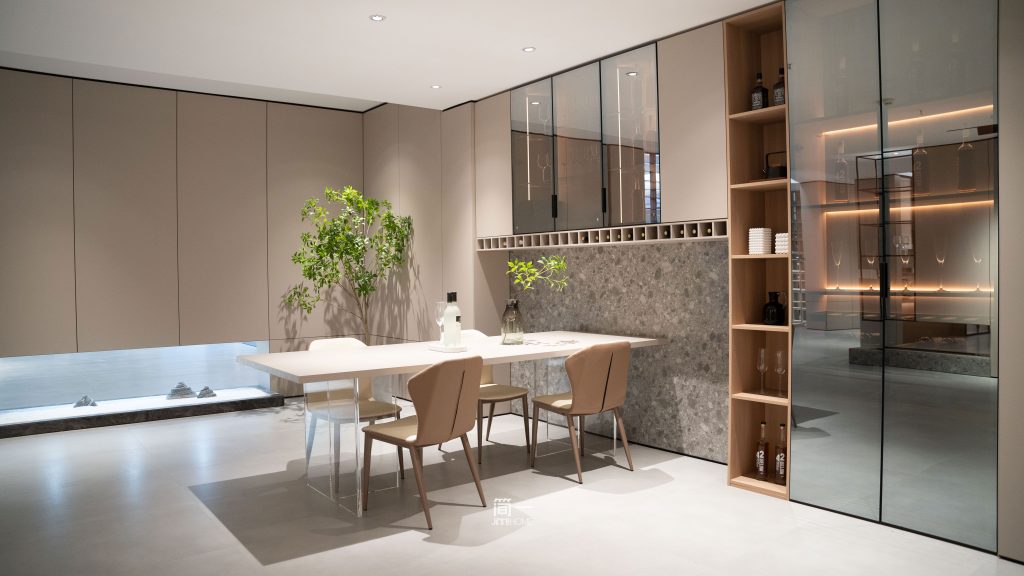 寻境厨餐厅的独特之处在于它不仅仅是一个功能完善的烹饪区域,更是一个能够为生活增色添彩的空间。这里不仅承载了烹饪的热情,还记录着家庭生活的美好瞬间。每一处细节都彰显着对品质与美好生活的坚持。