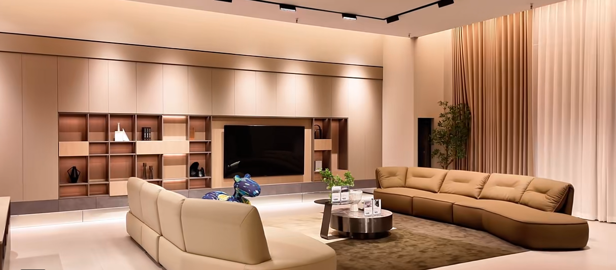 鹅卵石沙发和半岛沙发都具有独特的设计和线条,能够轻易地成为空间中的焦点。这些异形沙发,设计感十足,能够瞬间提升空间的现代艺术气息。此外,这些沙发的舒适体验也是一大亮点,坐上去就像被云朵包围,舒适度满分。沙发的独特设计和背景墙的通透感相互呼应,使得整个空间看起来既和谐又充满个性,这种搭配,能够激发创意潜能,让家的每个角落都充满惊喜。